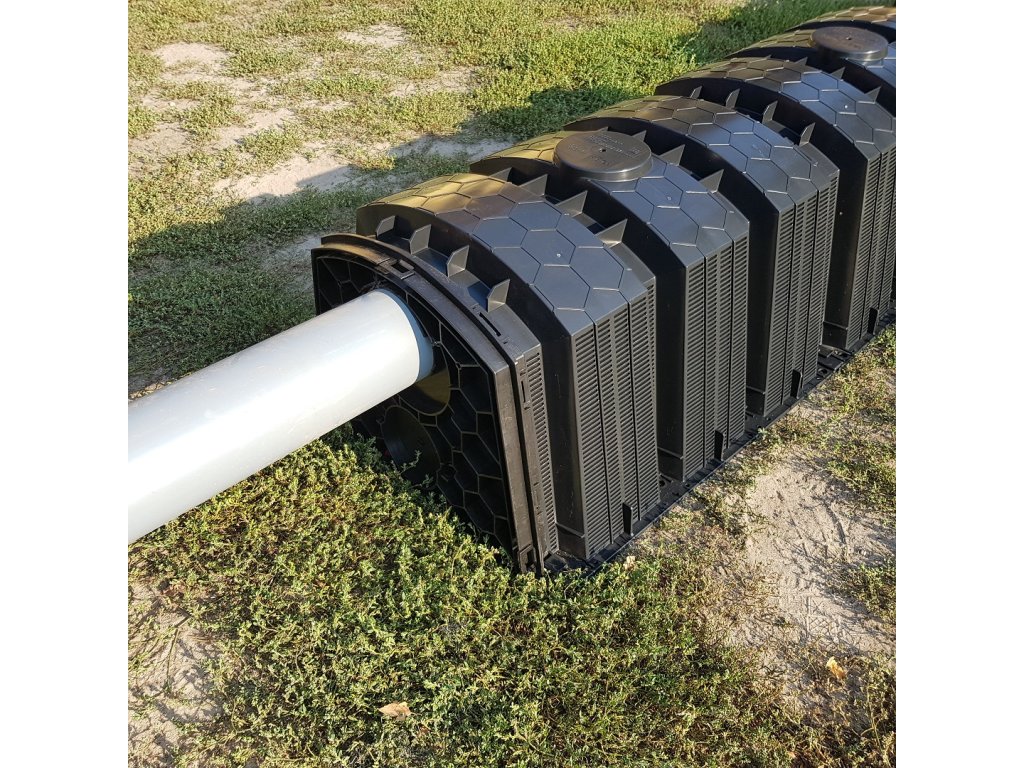 Na začátku tunelové řady je namontována koncová deska vybavená deflektorem. Deflektor absorbuje hydraulický ráz dopravované odpadní nebo dešťové vody. Díky jeho použití nedochází k vyplavování zeminy v místě přítoku odpadní nebo dešťové vody. Koncovou desku instalujeme také na konec tunelové linky. Instalace by měla být vybavena větracím přívodem vzduchu. To stejné lze aplikovat pomocí jednoho ze dvou připojení umístěných na horní stěně každého tunelu nebo pomocí horního připojení v uzavírací koncové desce. Spoje v horní části tunelu lze také použít jako inspekční otvory.