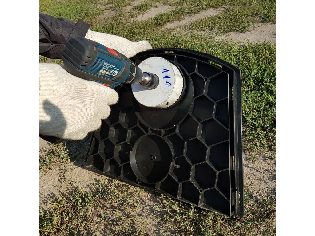 3 vyvrtejte požadovaný otvor do koncové desky pro vtok odpadní nebo dešťové vody
