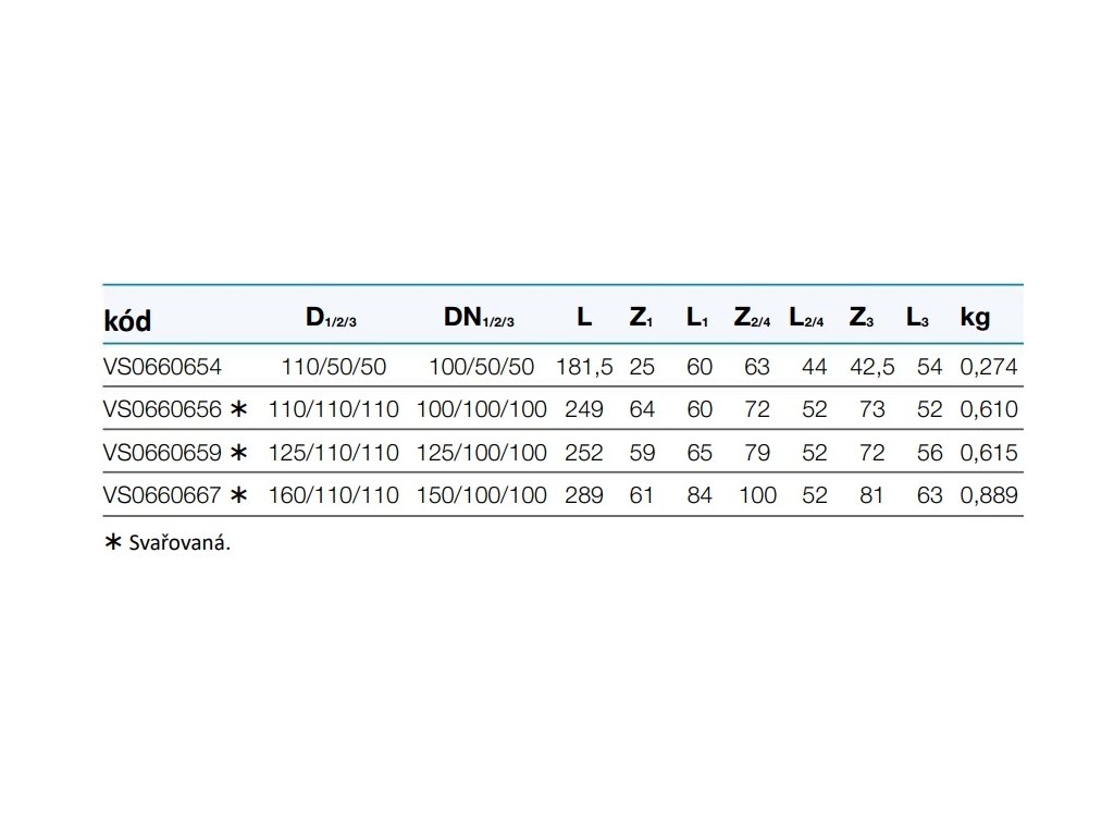 | Připojení: | DN 110/50/50, DN 110, DN 125/110/110, DN 160/110/110 |