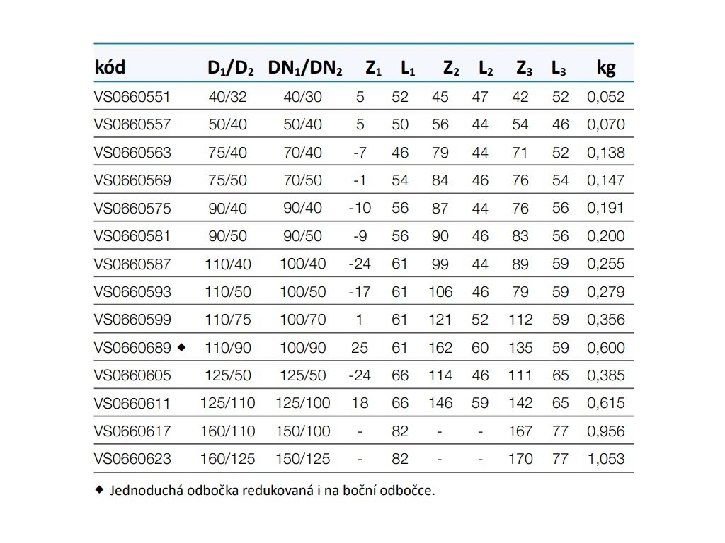 | Připojení: | DN 40/32, DN 50/40, DN 75/40, DN 75/50, DN 90/40, DN 90/50, DN 110/40, DN 110/50, DN 110/75, DN 110/90, DN 125/50, DN 125/110, DN 160/110, DN 160/125 |