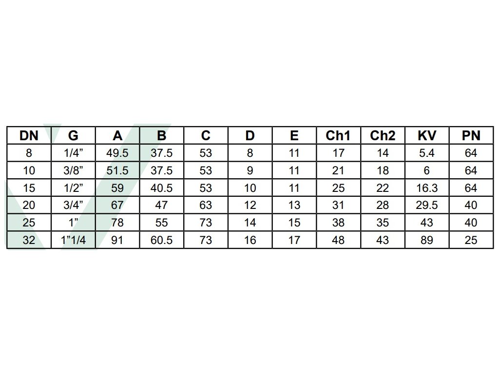 - maximální pracovní tlak 40 bar pro DN 20 - DN 25