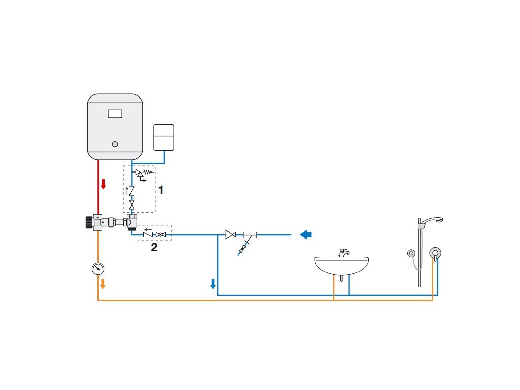 V systémech s termostatickými směšovacími ventily by měly být instalovány zpětné klapky, aby se zabránilo nežádoucím zpětným tokům.