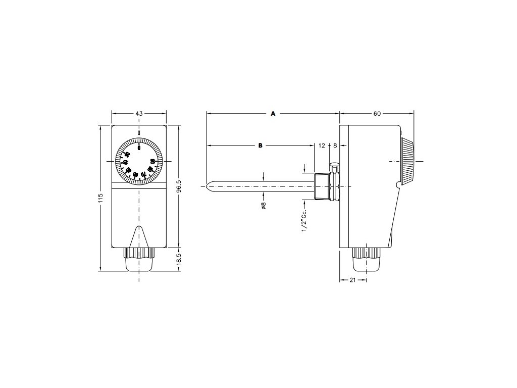 A uvolněte šroub na jímce a vysuňte jímku z čidla termostatu
