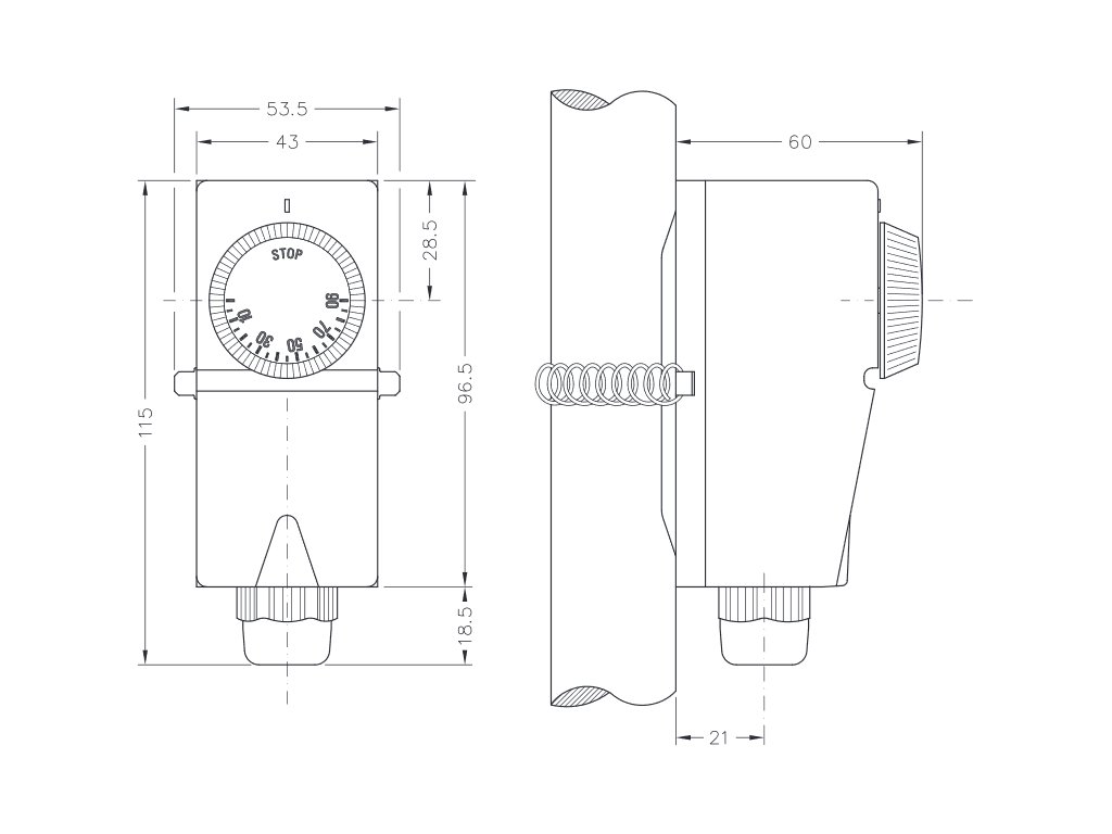 CEWAL TUSC termostat 20-90 °C 240 V příložný