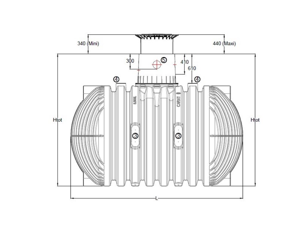 Maximální výška překryvu nádrže s mezikusem a teleskopickým nástavcem (pouze v pochozí oblasti, ne pod pojezdovými plochami osobními vozy). Bez spodní vody.
