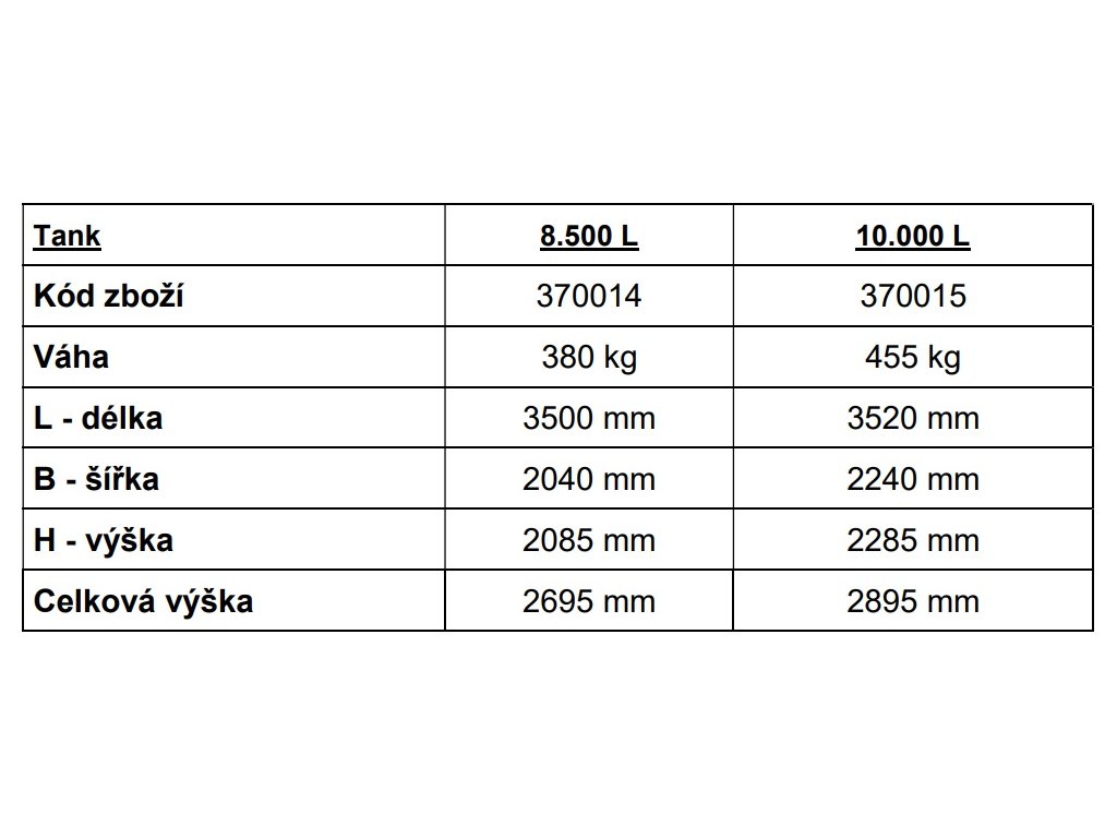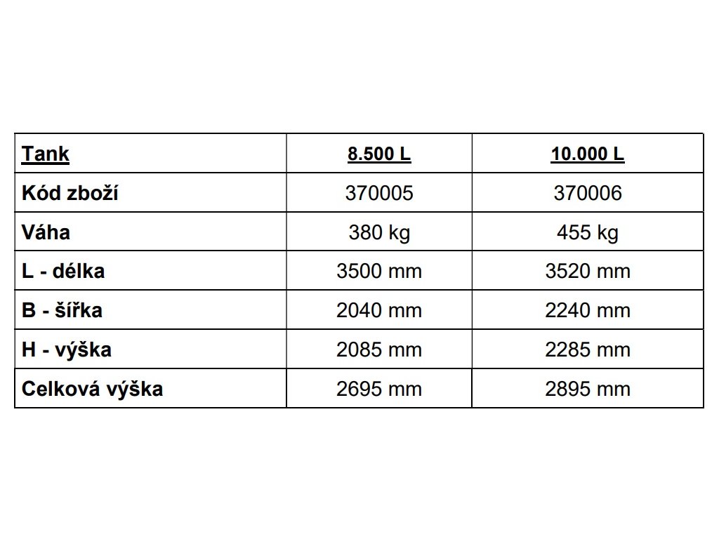 | Provedení: | bez dómu, bez poklopu, na dešťovou vodu, oválná, podzemní nádrž, podzemní nádrž XL, pochozí, pojezdová, samonosná |