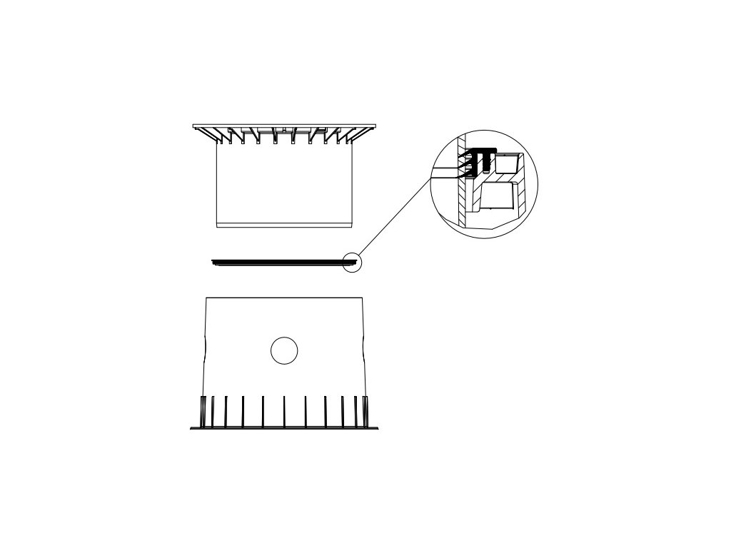 Výška překryvu nádrže s teleskopickým nástavcem litina (třída B) v pojezdové oblasti osobními vozy max. 3,5 t. Bez spodní vody.