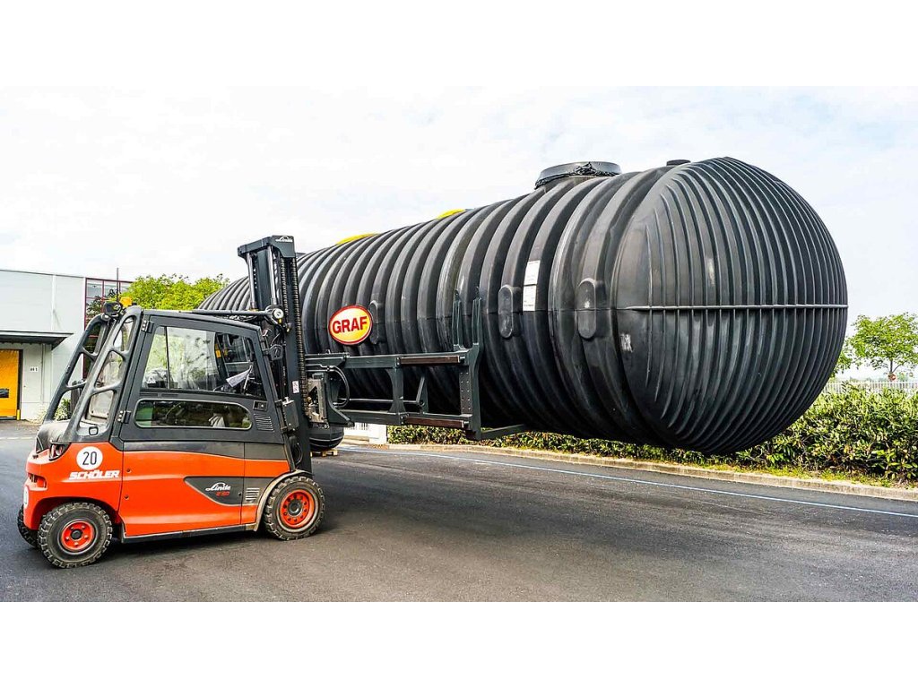 Speciálně konstruovaná oválná Graf Carat XXL nádrž na dešťovou vodu.