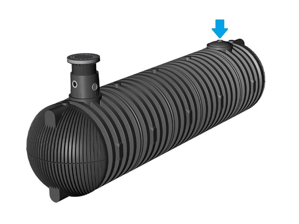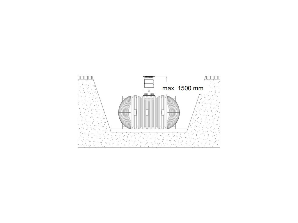 Maximální výška překryvu nádrže s mezikusem a teleskopickým nástavcem (pouze v pochozí oblasti, ne pod pojezdovými plochami osobními vozy). Bez spodní vody.