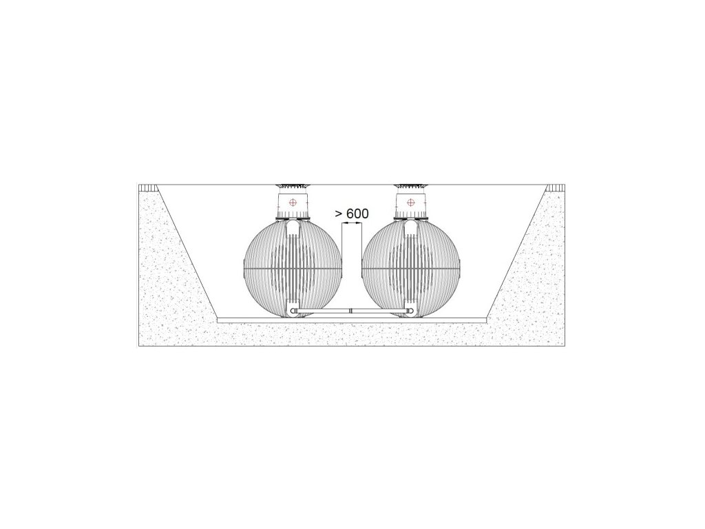 Jsou-li zemní nádrže instalovány vedle pojezdových ploch pojížděných těžkými vozy do 12 t, je třeba od těchto ploch dodržovat minimální odstup. Hloubka výkopu = vzdálenost od pojezdové plochy!