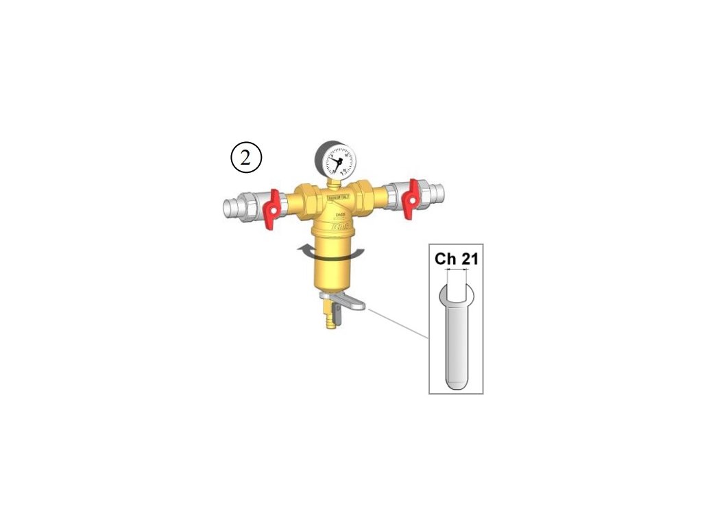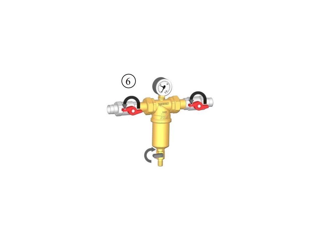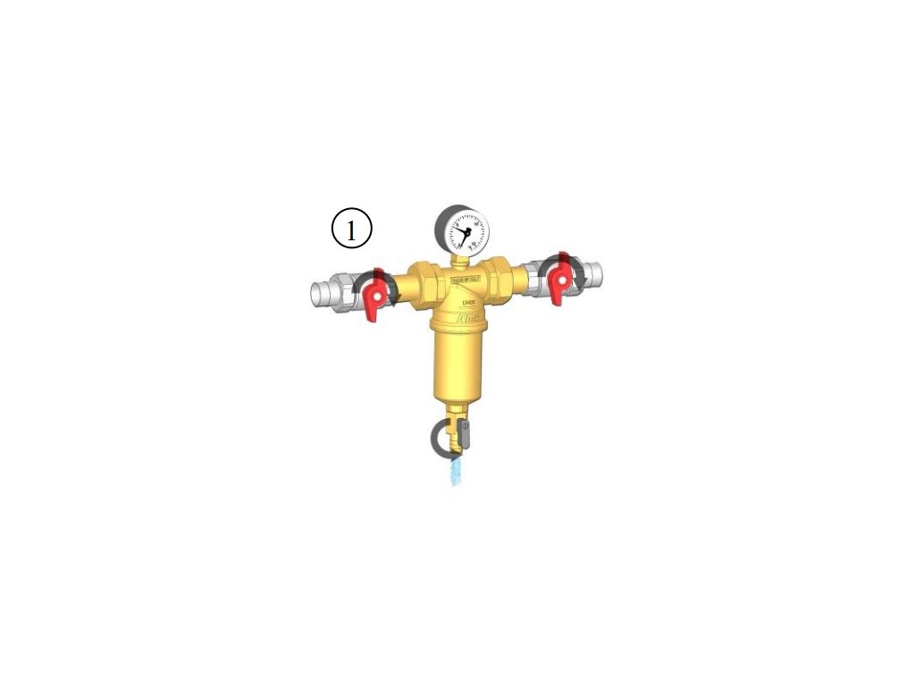 Zachycené nečistoty jsou eliminovány z filtrační nádoby ručně otevřením vypouštěcího ventilu proplachem.