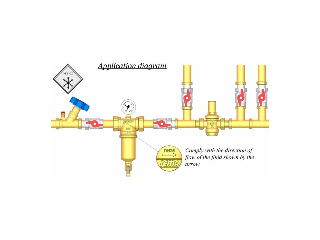 Malé rozměry filtru umožňují instalaci v malých prostorech a chrání zařízení před mechanickými nečistotami.