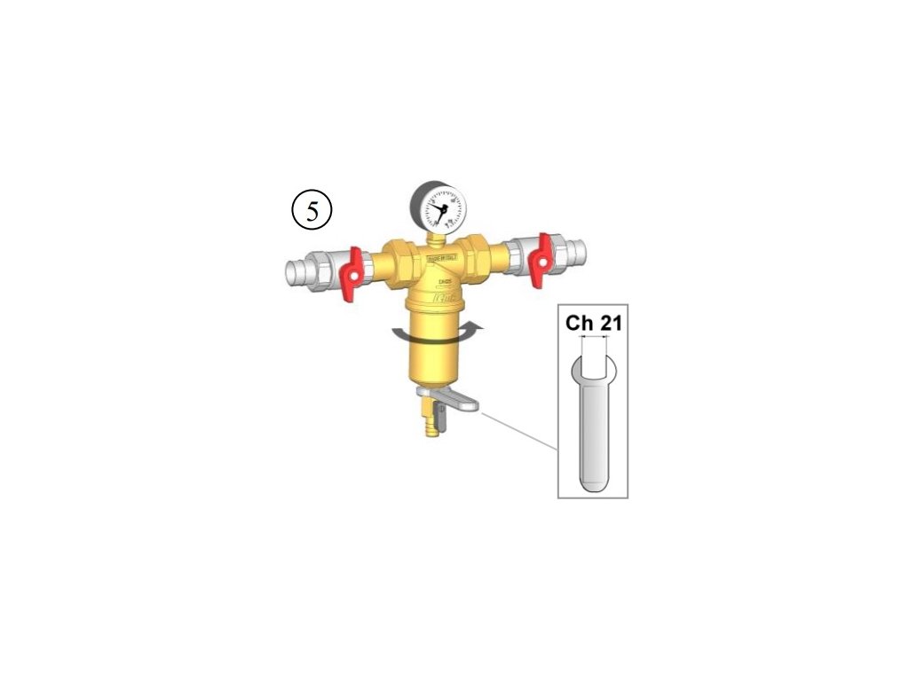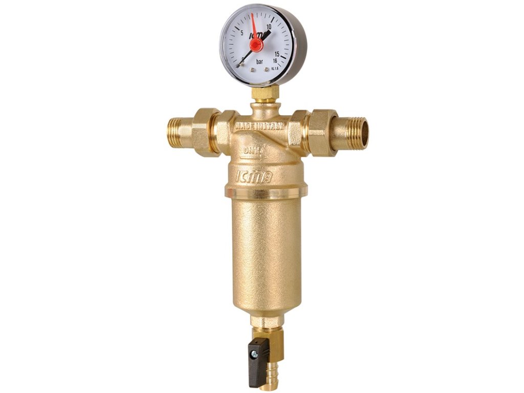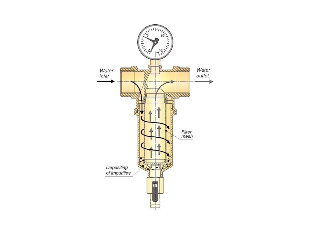 Filtr má kontrolní manometr a vypouštěcí ventil na odstranění všech nečistot.