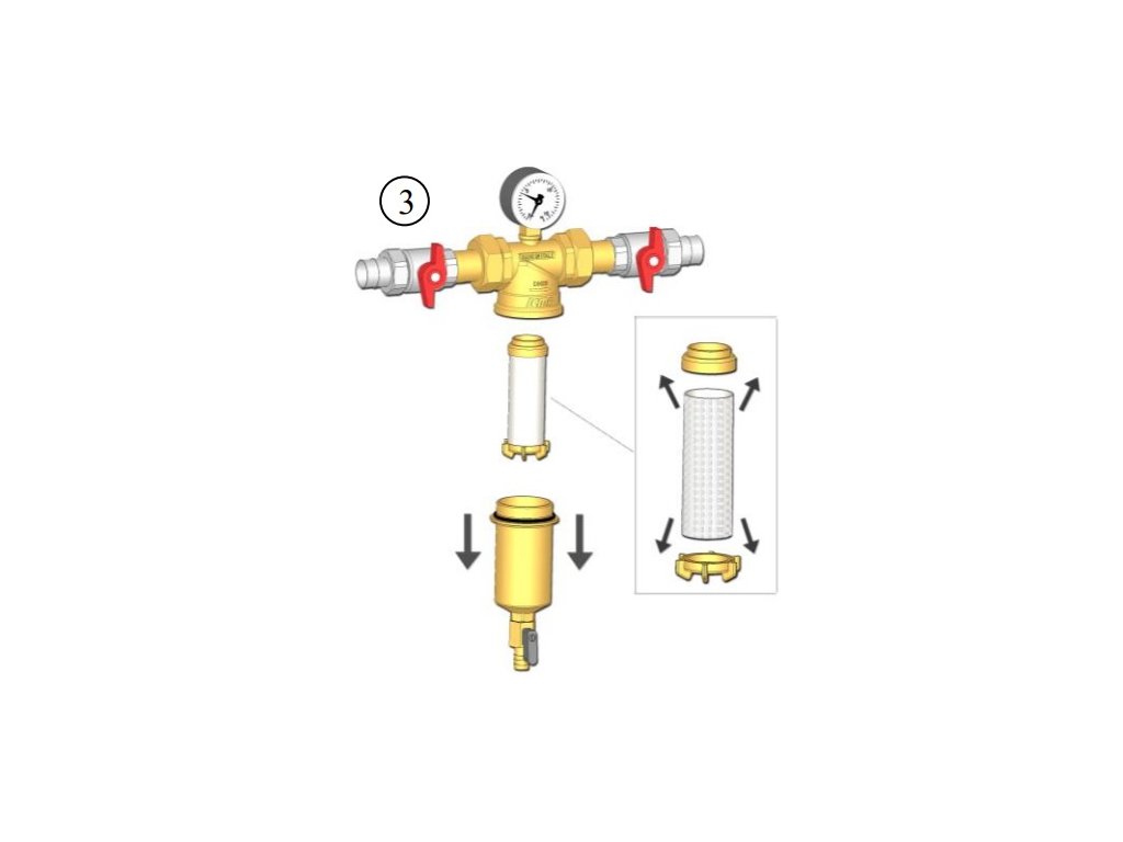 Filtr zachycuje mechanické nečistoty, jako jsou částice rzi, zbytky těsnícího materiálu ze závitových spojů, písek atd.