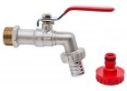 Rychlospojka pro ⇒ Výtokový zahradní kulový ventil s ocelovou pákou a 2 vývody. Připojení 3/4". Provozní teplota 0 °C +120 °C. Provozní tlak PN 25. Mosaz CW617N-CuZn40Pb2. Těsnění PTFE (teflon). O-ring NBR. Pro rozvody vody a...