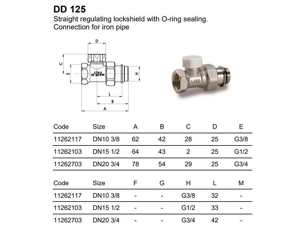 LUXOR DD 125 uzavírací a regulační radiátorové šroubení přímé