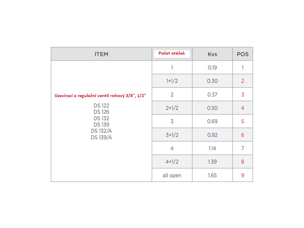Nastavení průtoku ventilu. Odšroubujte plastovou krytku závitu ventilu. Pomocí šestihranného imbusového klíče 6 (nebo 10) nastavte požadovaný průtok. Otevřete (uzavřete) ventil o tolik otáček, kolik je uvedeno v tabulce níže. Po nastavení průtoku našroubujte plastovou krytku zpět na závit ventilu a bez použití nadměrné sily krytku dotáhněte.