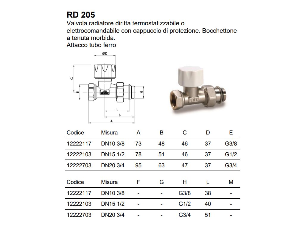 LUXOR RD 205 termostatický radiátorový ventil s přednastavením přímý