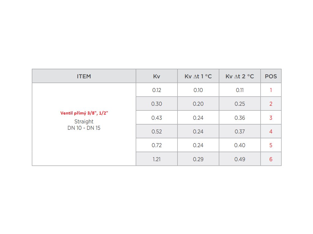 Chcete-li nastavit maximální průtok termostatického ventilu, zarovnejte referenční značku na tyčince s pozicí 6 na těle ventilu. Aby nedocházelo k nadměrné hlučnosti systému, nepoužívejte termostatické ventily s hodnotou ∆P vyšší než 0,2-0,25 bar. Před spuštěním systému zkontrolujte, zda je volič průtoku správně umístěn v poloze 6.
