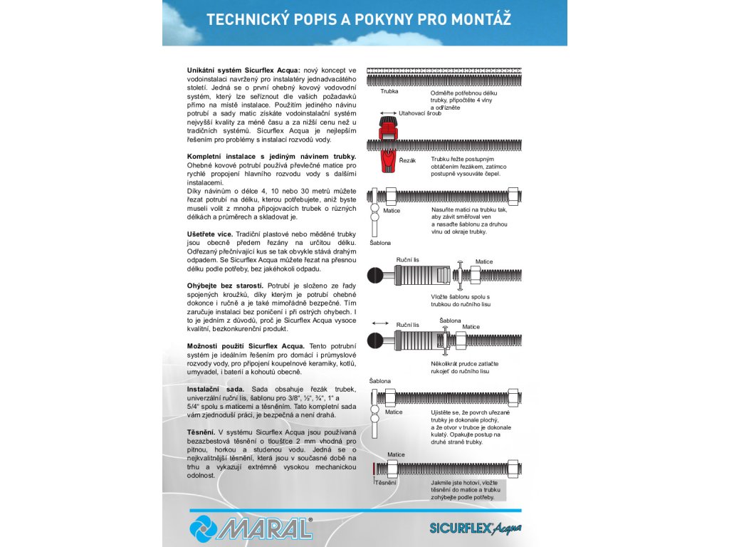 MARAL SICURFLEX CSST AQUA nerezová vlnovcová trubka na vodu 5/4"