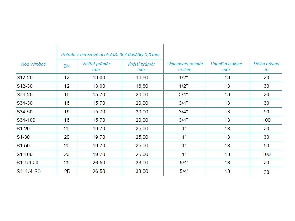 - tloušťka stěny 0,3 mm