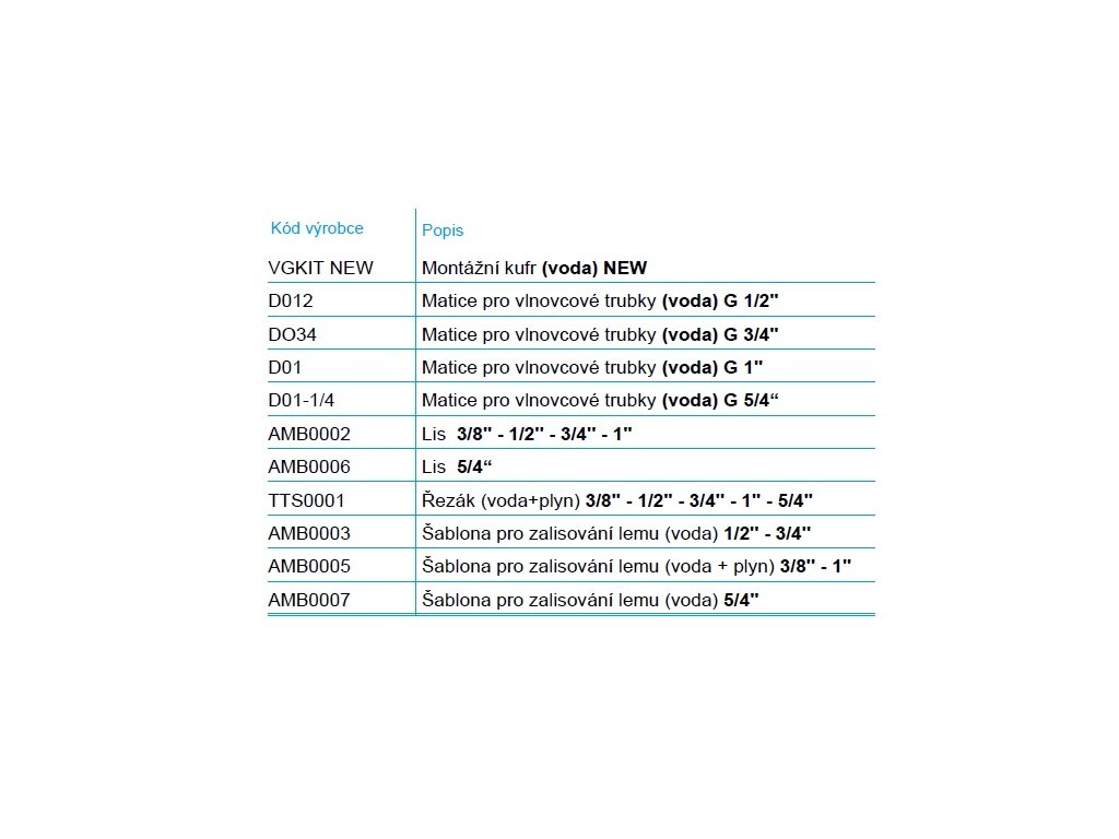 Kufr VGKIT NEW obsahuje vše, co budete potřebovat k instalaci potrubí 1/2", 3/4" a 1".