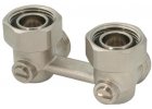 Termostatický H-ventil s adaptéry. Vnější (M) závit. Připojení G 1/2"x3/4" Eurokonus. Rozteč 50 mm. Provedení rohový, poniklovaný. Provozní teplota 0 °C +100 °C. Provozní tlak PN 10. Mosaz CW617N. Těsnění...
