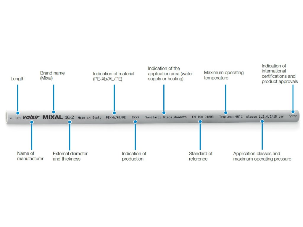 Mechanické vlastnosti trubek Mixal® jsou takové, že hodnota tlaku, při kterém může dojít k roztžení trubky při pokojové teplotě (ve vztahu k průměru trubky) je více než 100 bar!